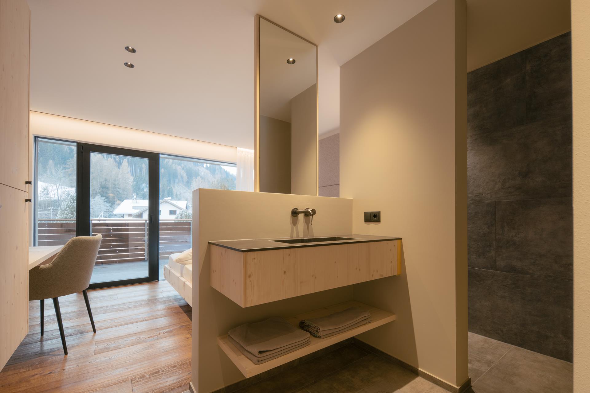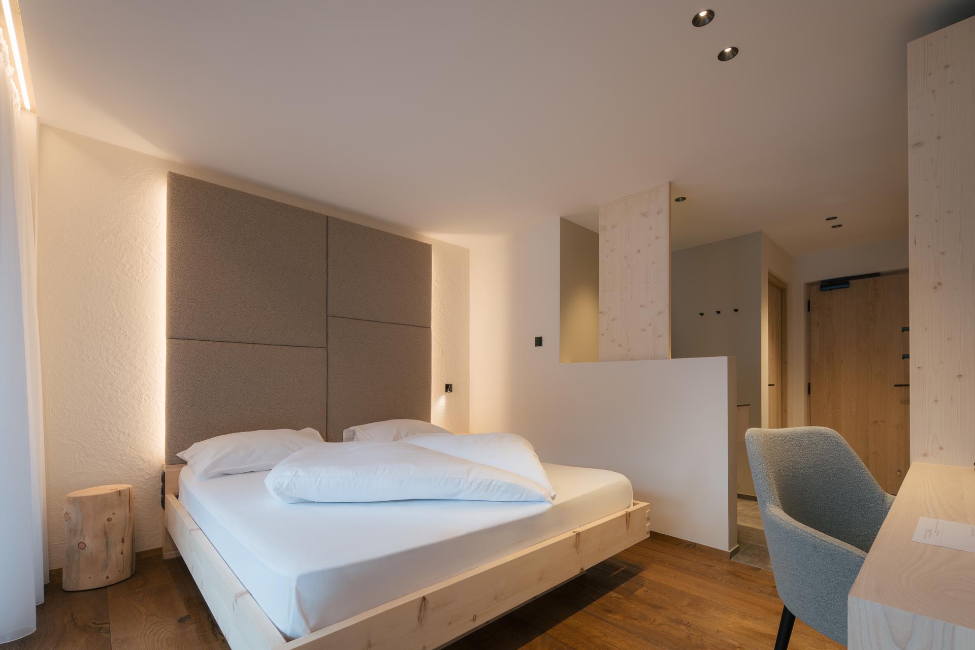 Urlaubsfeeling pur in absoluter Gemütlichkeit: Naturholzzimmer in Fichte und Zirbenholz mit einem naturbelassenen Eichenholzboden. Dazu ein Balkon oder Wintergarten im ersten oder zweiten Stock. Einfach zum Wohlfühlen!
