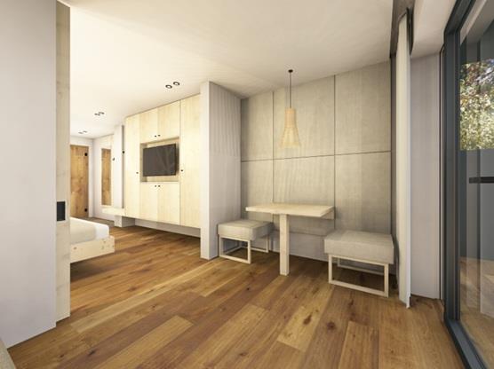 Uno sguardo fuori dalla finestra basta per capire da dove viene il nome della suite: le Cime Bianche di Telves fanno bella mostra di sé qui! In stile tirolese in legno di cirmolo e abete e allestita dal falegname della zona con tanto amore, vanta una zona notte separata dalla zona giorno e un giardino d’inverno climatizzato con dondolo benessere.